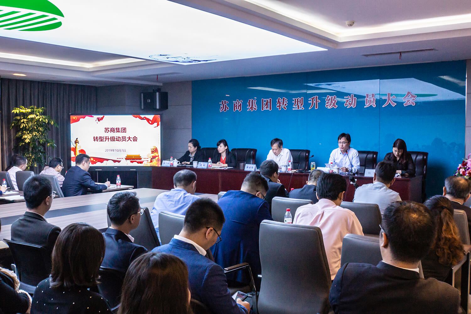 金秋送爽,丹桂飄香。2019年10月7日,蘇商集團在辦公新址華智園隆重召開轉(zhuǎn)型升級動員大會,集團領(lǐng)導(dǎo)及全體員工、河南特車、金城軌道和大匯盈商業(yè)的領(lǐng)導(dǎo)、中層以上干部及骨干員工共80余人參加了會議。